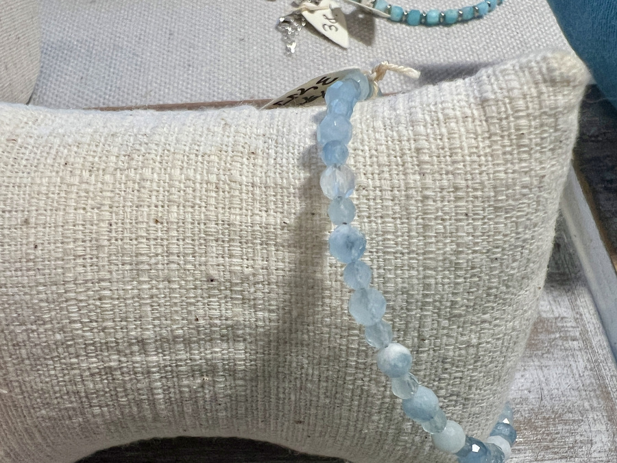 So klar, so rein, so edel - die Kombination mit hellen Silberteilen lässt den Stein noch mehr strahlen. Der Preis ist für 1 Aquamarine-Armband. Kombi auf Anfrage.