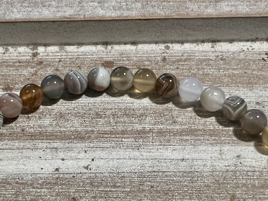 Der grau-braune Botswana Achat hilft die Balance zu finden, schenkt Zuversicht und Lebenskraft. Er gilt zudem als Schutzstein werdender Mütter und kann positive Auswirkungen auf Wehen haben und die Geburtsschmerzen senken.